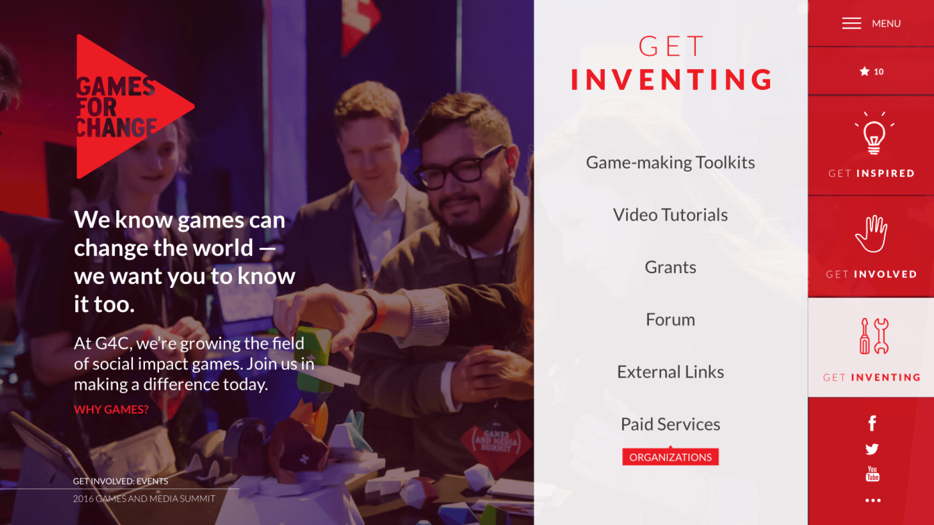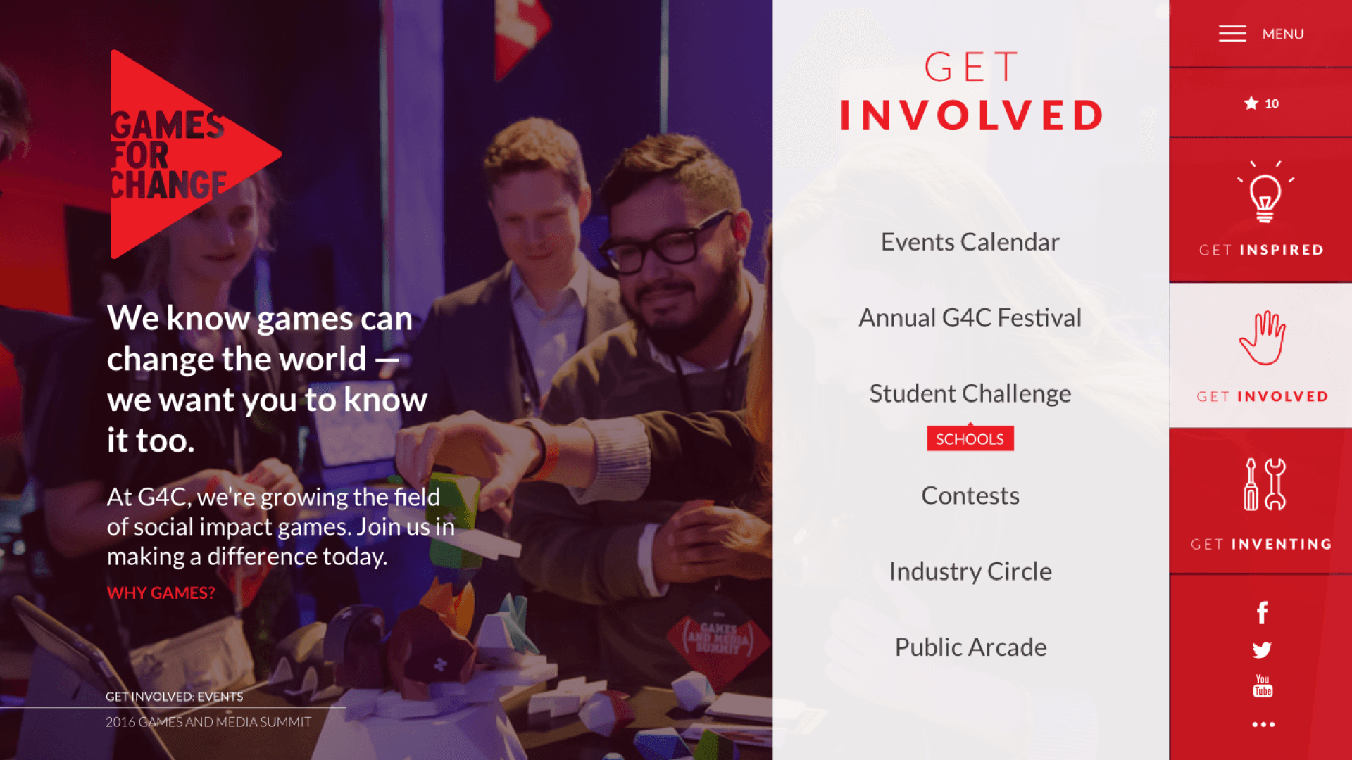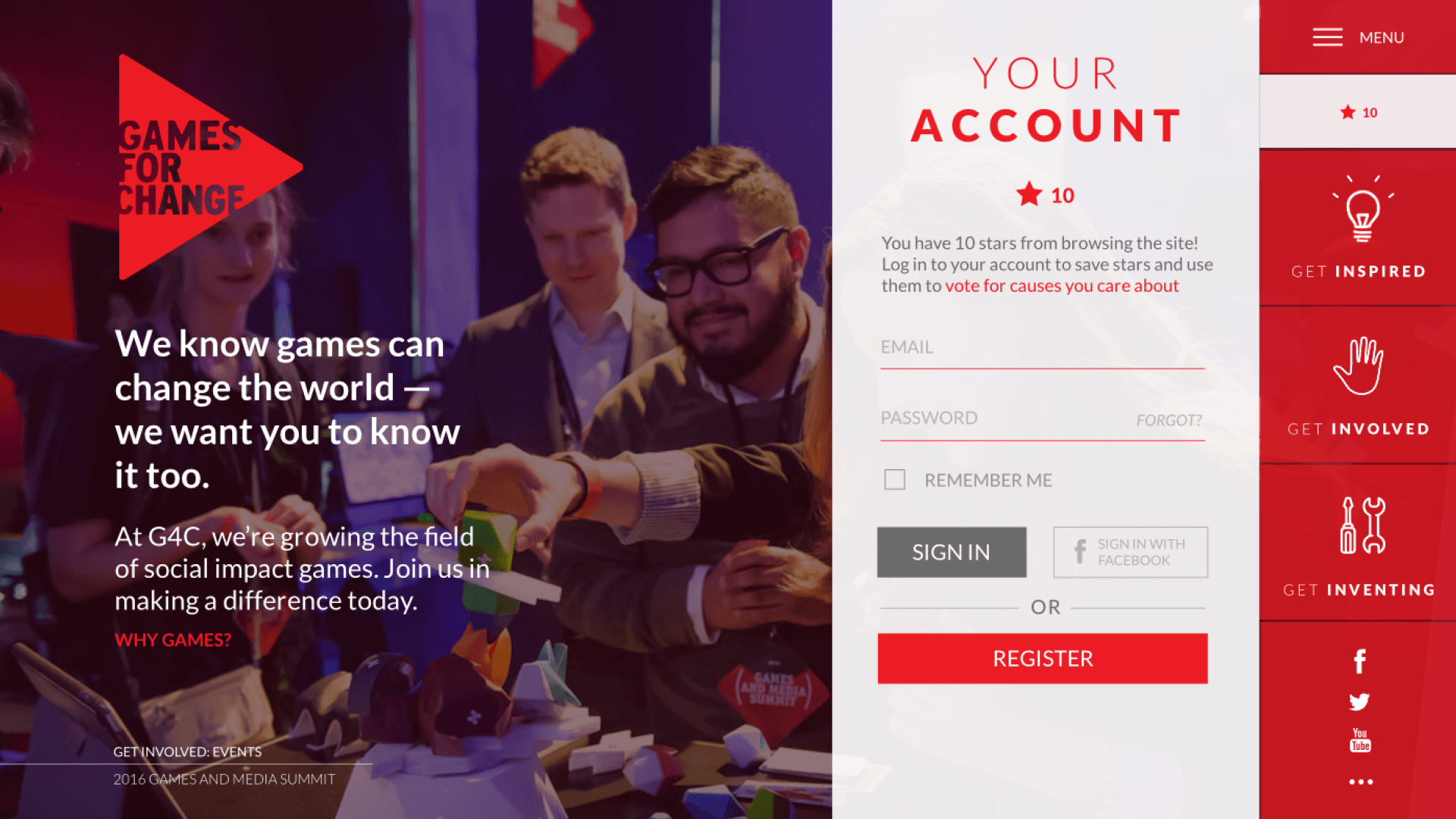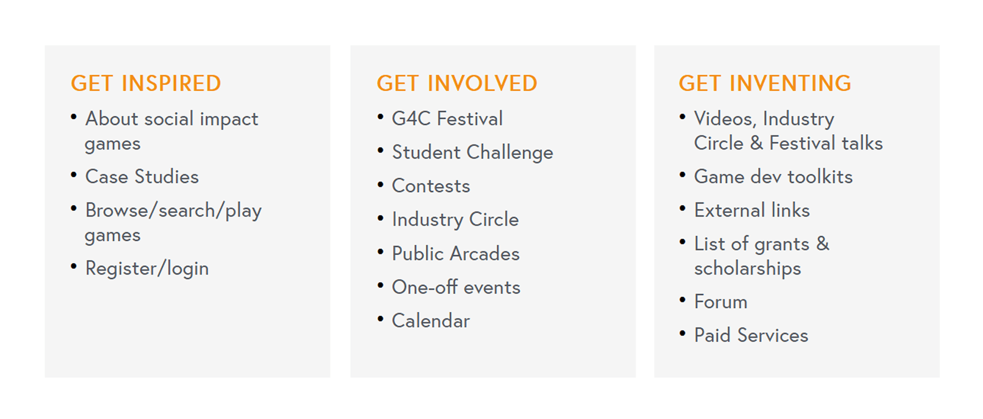 Games for Change (G4C) is an organization that facilitates the creation and distribution of social impact video games, but their website was outdated and confusing to navigate. The site didn’t clearly convey their mission, and had convoluted menus that made it difficult for users to understand what G4C offered or where to go next.